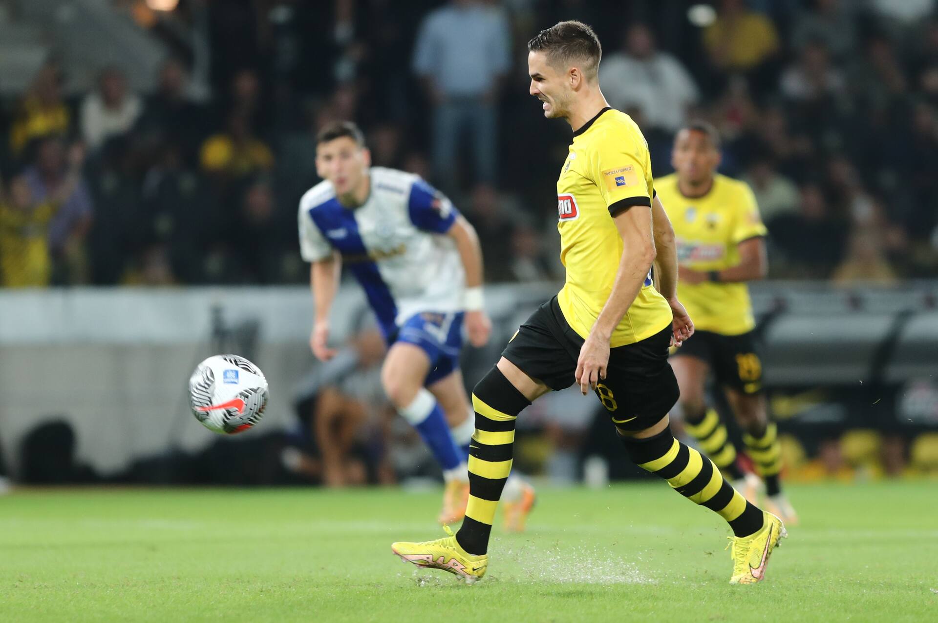 Striker Andraz Sporar squandered a double chance to score, first having his penalty into the bottom right kept out by Nikolaos Papadopoulos before the goalkeeper popped back up to also save the Slovenian’s overhead kick (45+1′).