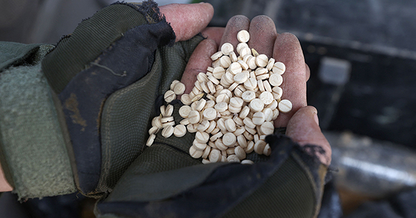 Every year, customs officials across the Middle East seize thousands of kilogrammes of the synthetic psychotropic drug captagon hidden in fruit crates, boxes of confectionery, tubs of hummus and even the stomachs of live sheep. In March the Iraqi authorities found three million tablets in shipments of apples on the border between Syria’s Deir al-Zor province and Anbar province in western Iraq. A few weeks later, Saudi Arabia seized eight million, and released photos of the smugglers with the haul (1).