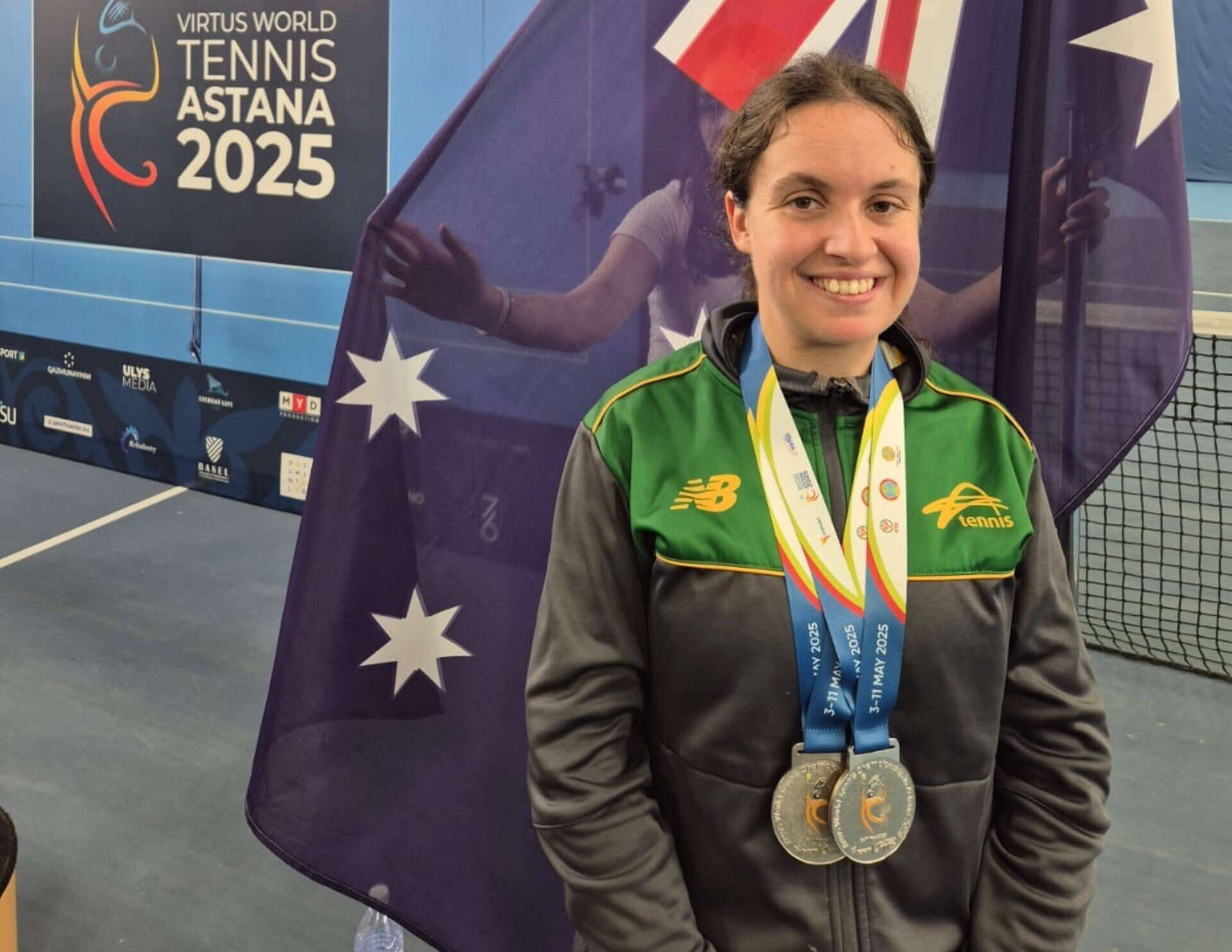 South Australian Andriana Petrakis has won two silver medals at the Virtus World Tennis Championships which took place in Kazakhstan.