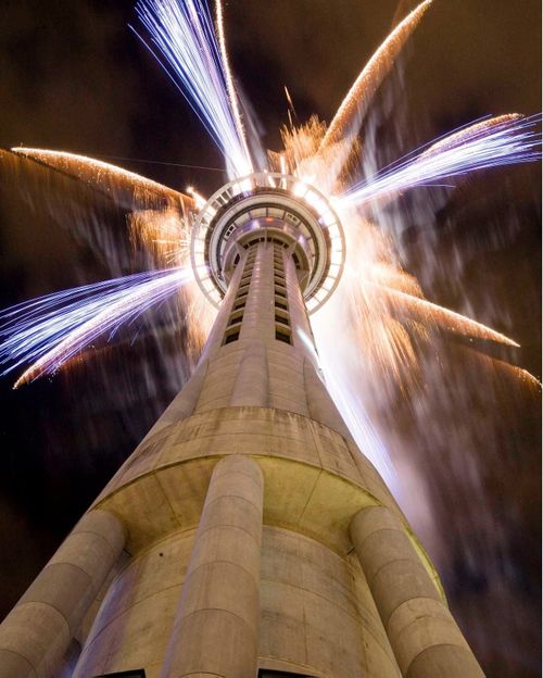 Auckland’s five-minute display involved 3500 fireworks launched from various floors of the 240-metre Sky Tower. Smaller community events were cancelled across New Zealand’s North Island due to forecasts of rain and possible thunderstorms.